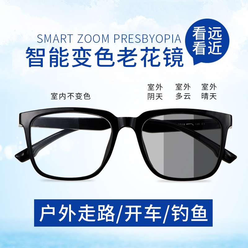 新款 智能变焦老花镜自动调节疲劳远近两用高清防蓝光眼镜镜片年轻