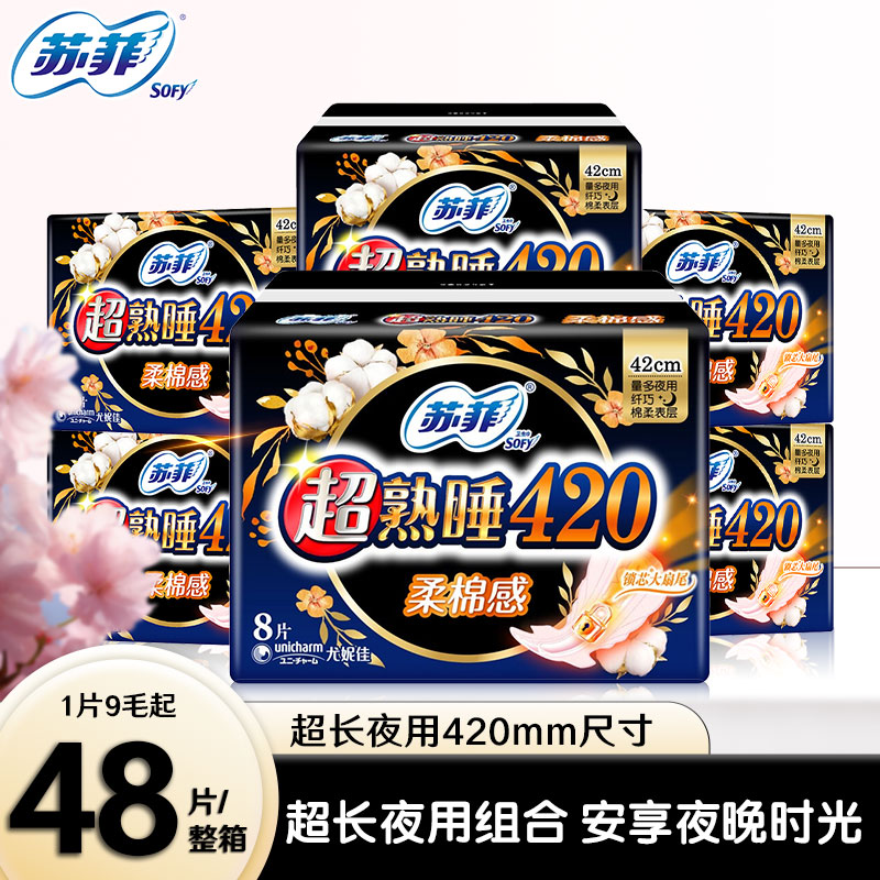 高洁丝夜用蚕丝感放肆睡420mm卫生巾 下拉详情享优惠