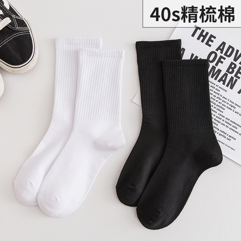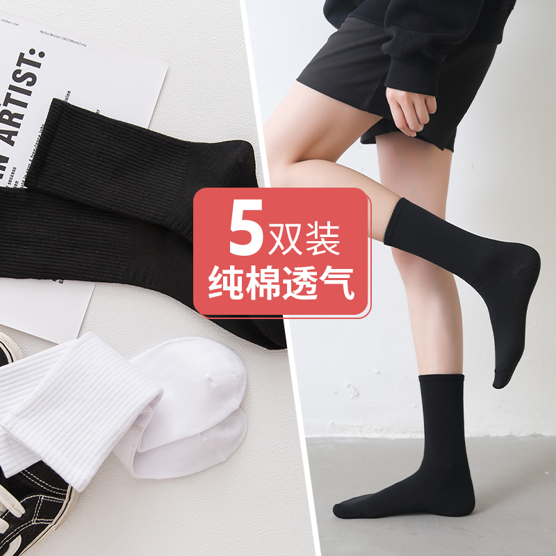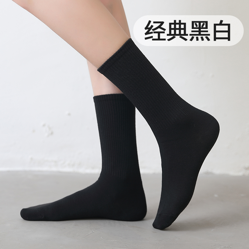 黑色长袜运动袜子女长筒春秋款 高帮外穿潮流 女生中筒袜纯色秋冬季