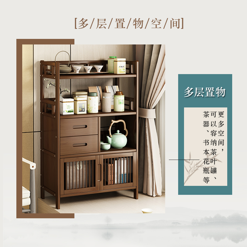 办公室组合防水家用实木楠竹房间床头茶室置物架多层古典简约书架