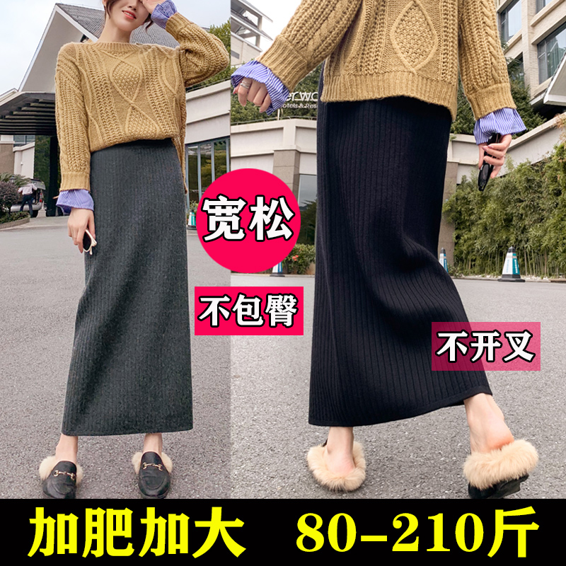 大码 加厚针织半身裙女秋冬胖mm包臀裙毛线裙一步长裙不开叉200斤