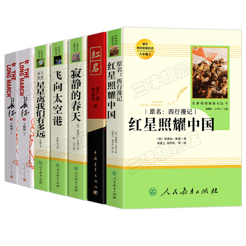 人民教育出版 阅读书籍 原著正版 寂静 春天 红星照耀中国 人教版 红岩 社初中生完整版 全套7册 长征 八年级上册必读课外书