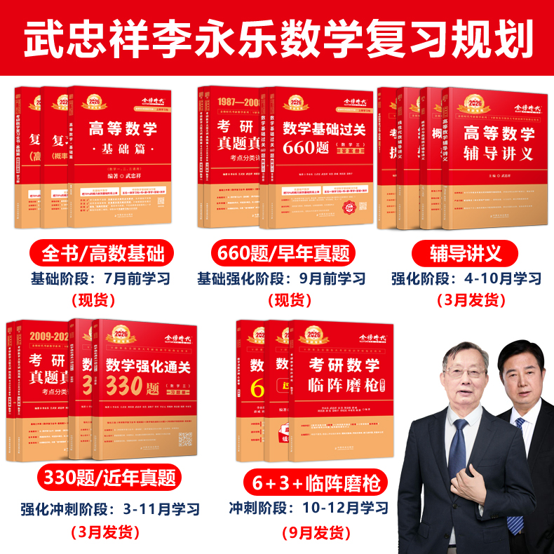 真题解析 基础660题 330题6套卷武忠祥线性代数高数辅导讲义高等数学 李永乐2026数学一数二数三复习全书 李永乐2027考研数学全套