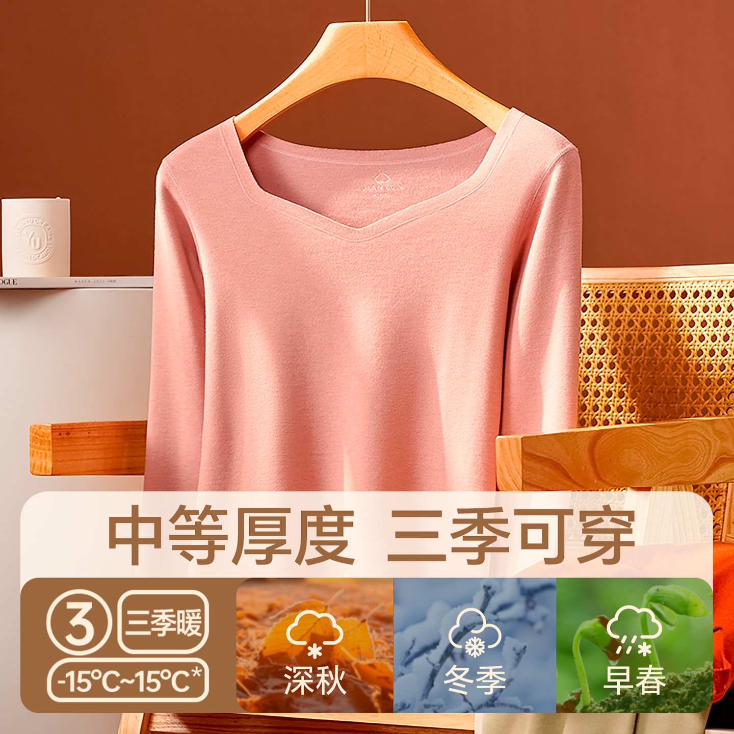 草本初色保暖上衣内搭打底女士秋冬长袖 带胸垫可外穿肌底衣打底衫