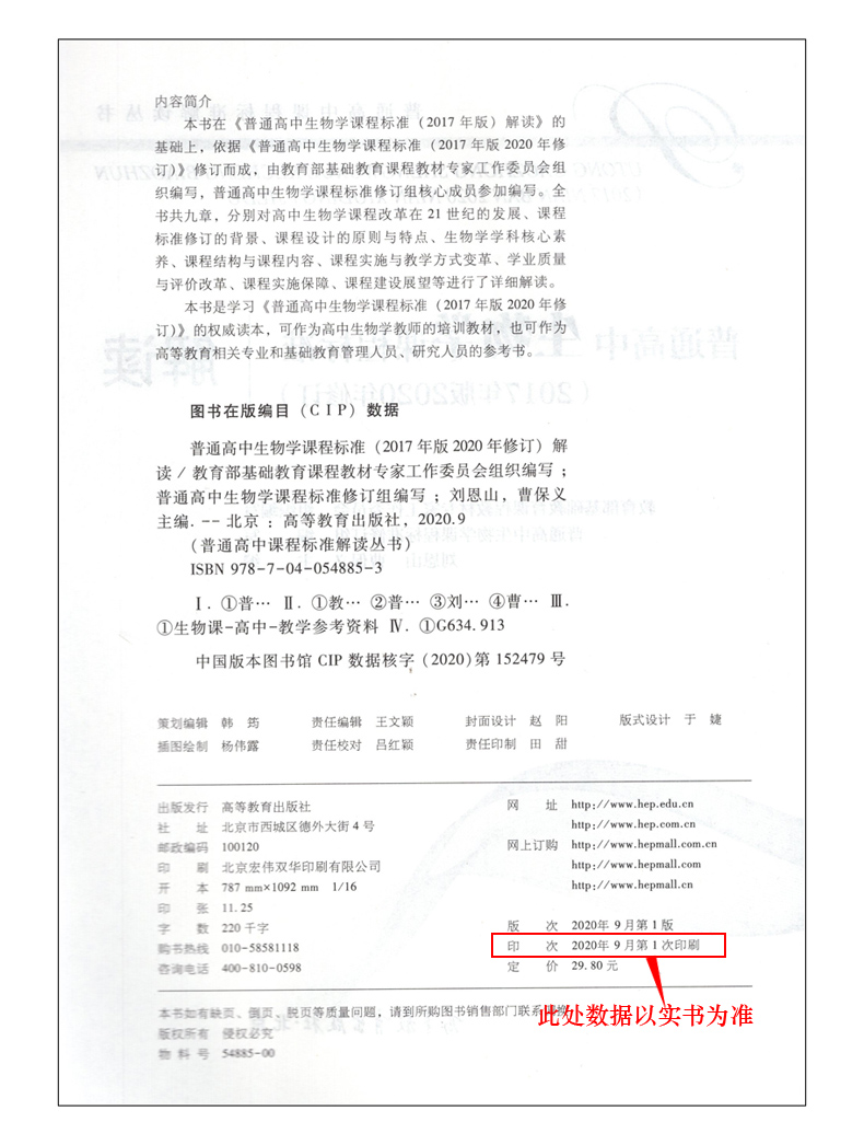 2020年修订 解读 社 普通高中生物学课程标准 9787040548853 高等教育出版 2017年版 曹保义 高中生物新课标解读 刘恩山