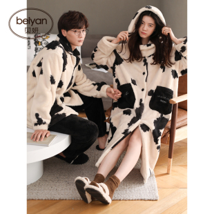加绒加厚可爱家居服套装 秋冬季 2025新款 猫人法兰绒情侣睡衣男女款