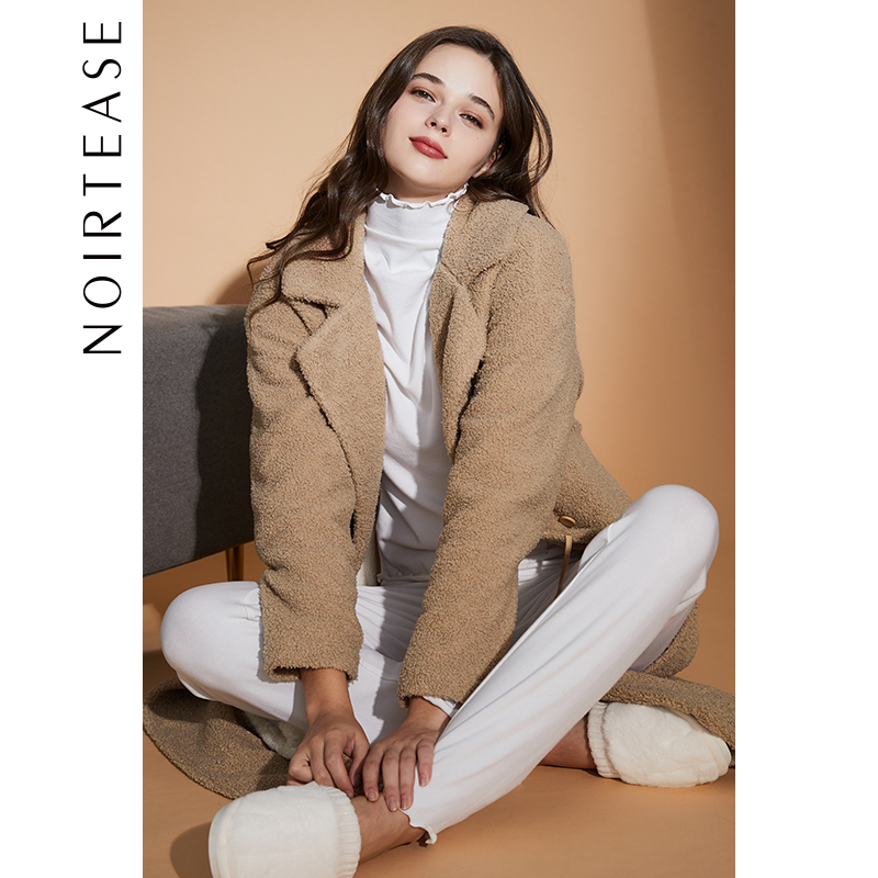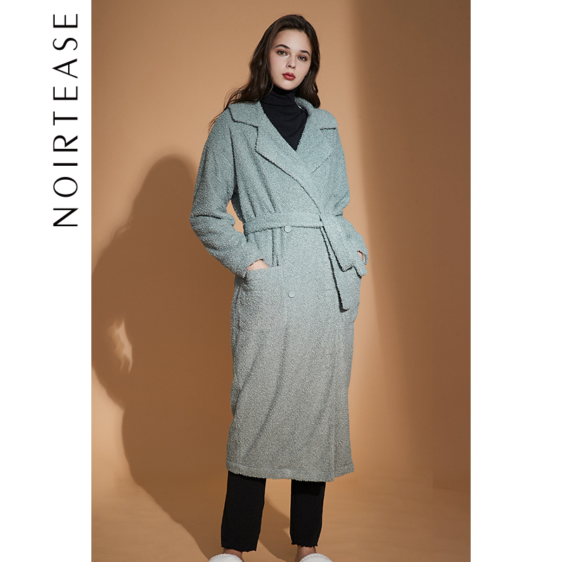 NoirTease奈黎诗休闲加厚加绒长款 睡衣可外穿系带睡袍女士大衣冬