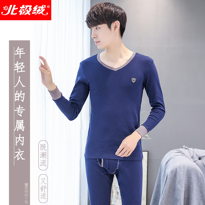 纯棉全棉青年保暖内衣男式 男内穿套装 青少年保暖衣冬 秋衣秋裤 男士