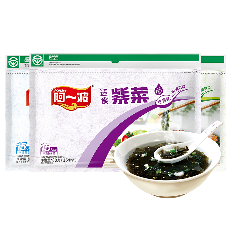 阿一波紫菜速食汤80克×3袋排骨海鲜味冲泡即食速溶蛋花汤料45包
