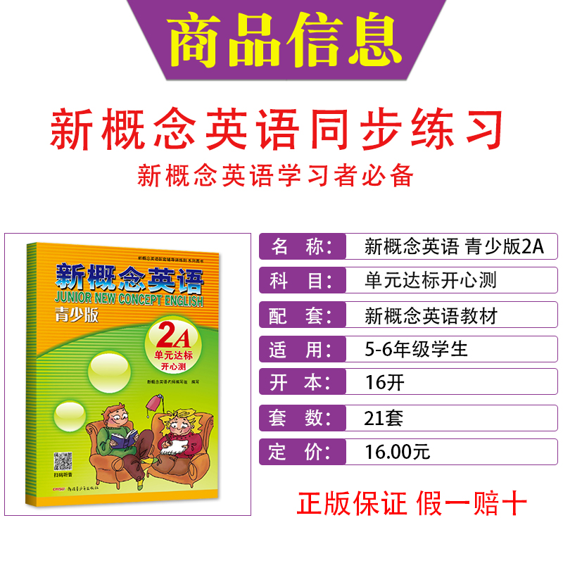 新概念英语2A单元 青少版 达标开心测同步练习试卷小学五六年级英语思维拓展新概念英语教材配套辅导入门练习预习测试卷 听音频 扫码