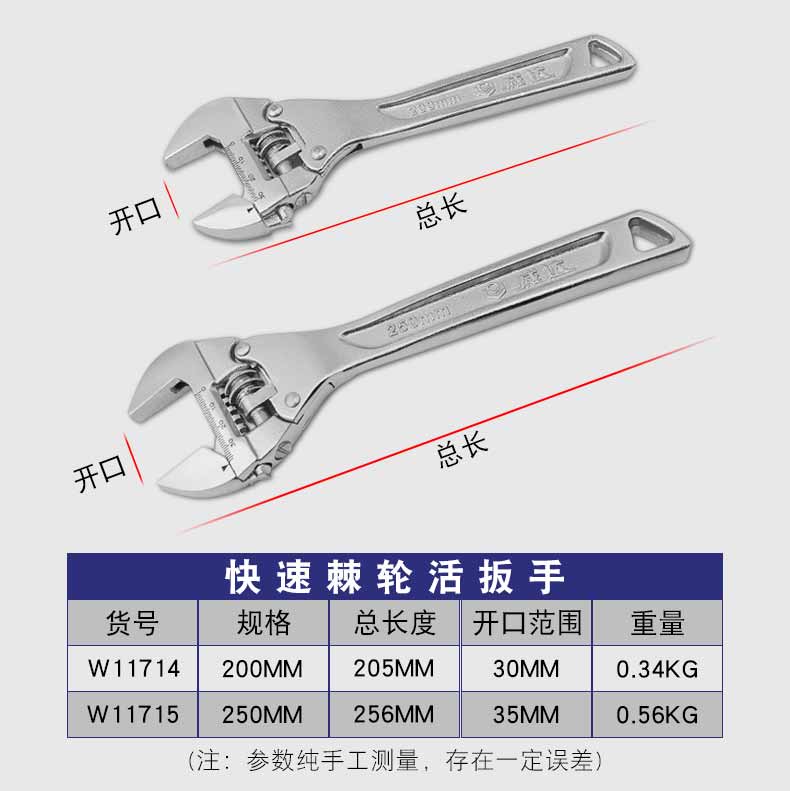 威达棘轮快速活扳手多功能快退式 大开口活动板手万能活口扳手工具