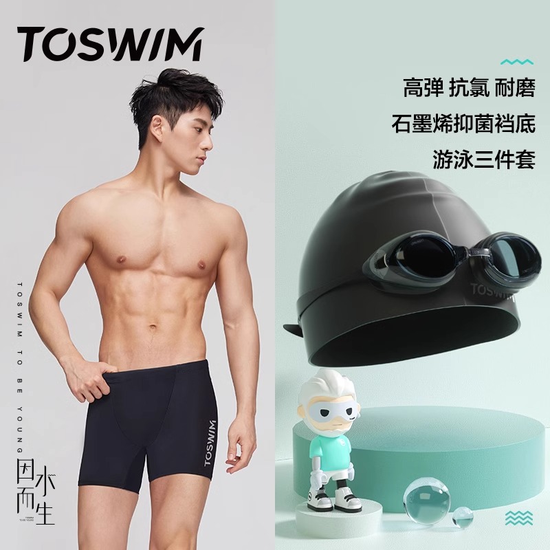 泳镜泳帽三件套游泳全套 防尴尬成人温泉游泳裤 TOSWIM专业男款 泳裤