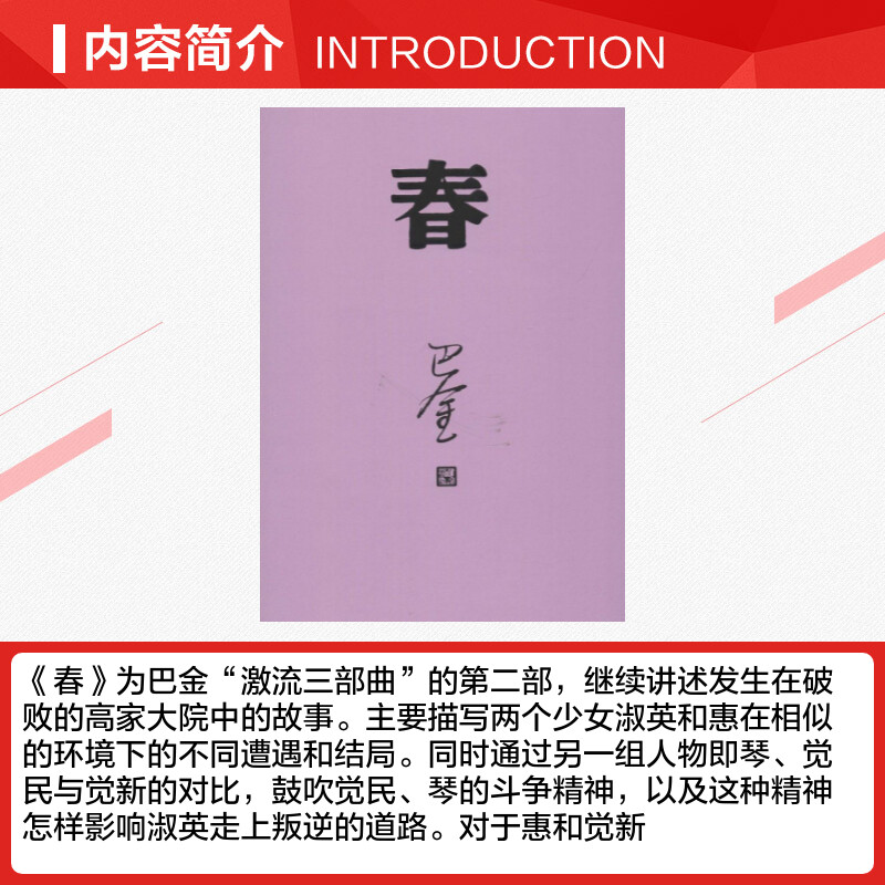 书人民出版 社高中生青少版 经典 春 新华书店正版 原著正版 文学现代当代小说书籍散文集中国翻译家译丛家春秋巴金激流三部曲 巴金写