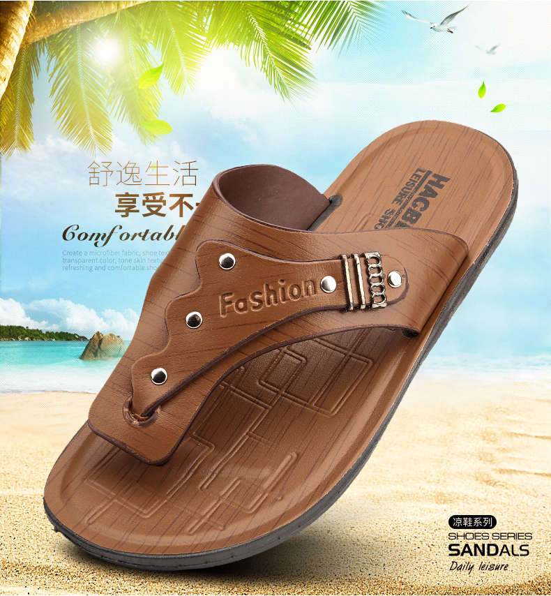 罗马2023新款 外穿拖鞋 皮凉鞋 夏季 爸爸鞋 沙滩鞋 老人拖鞋 人字拖男士