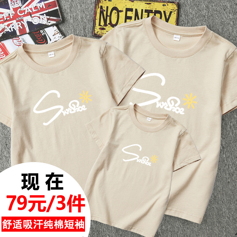 潮T 运动会出游度假全家福洋气母女装 纯棉亲子装 一家三口四口夏季