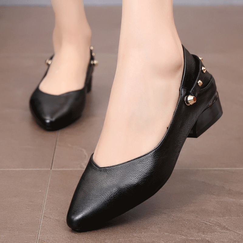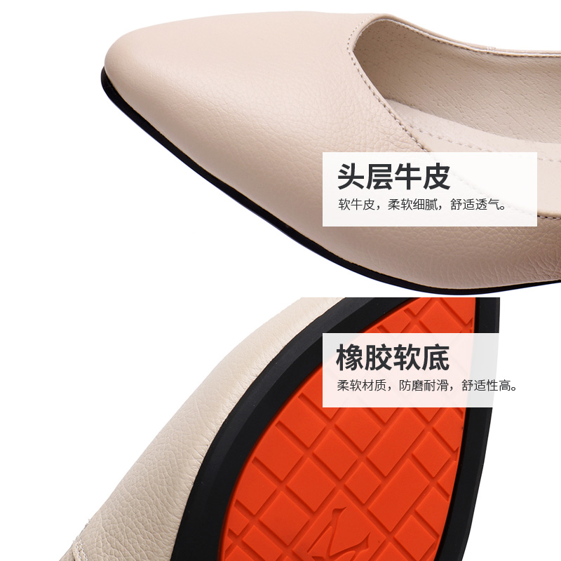 女鞋 43春季 时尚 2025百搭小跟女鞋 平底大码 新款 真皮一脚蹬单鞋