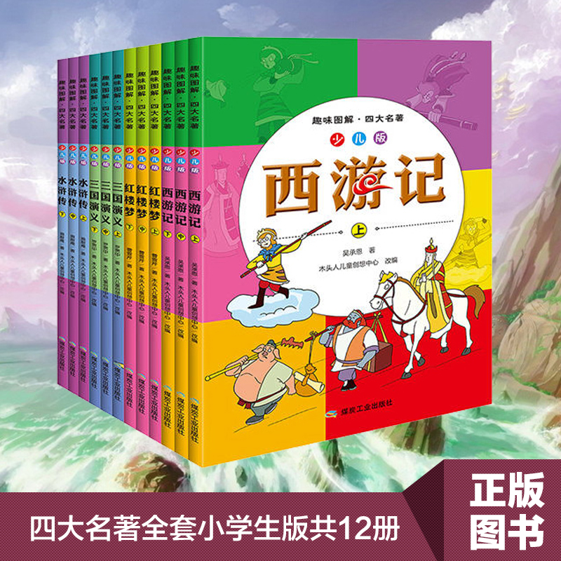 西游记水浒传红楼梦三国演义白话文彩图注音原著正版 12岁课外书中国儿童文学青少年小学生版 全套12册6 趣味图解四大名著小学生版
