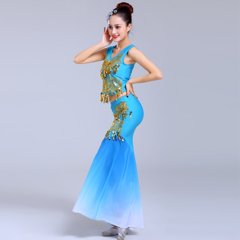 衣服民族风舞蹈演出服孔雀舞艺考鱼尾裙子 修身 傣族服装 成人女新款