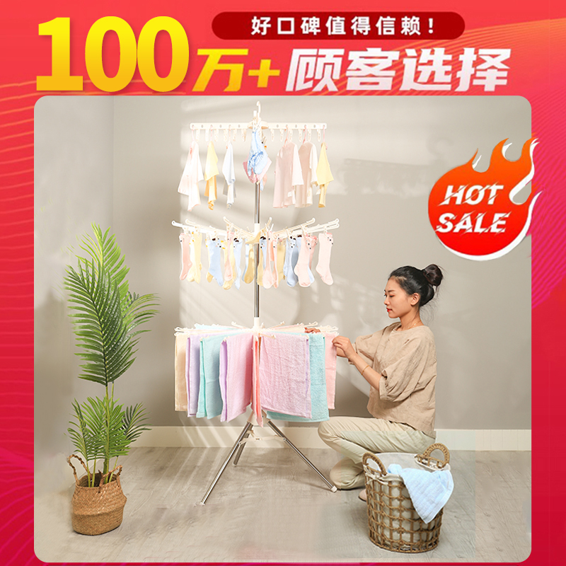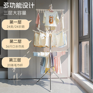 伸缩衣架阳台晾衣晾晒落地家用晾衣架室内卧室置地 升降晾晒衣架