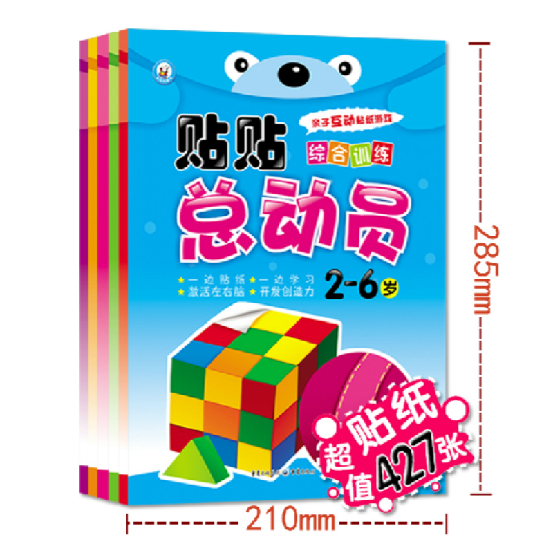 亲子互动游戏本 金娃娃贴贴总动员 左右脑智力潜能开发书 6岁幼儿益智手工游戏书籍 儿童贴纸书 全套6册 包邮 正版