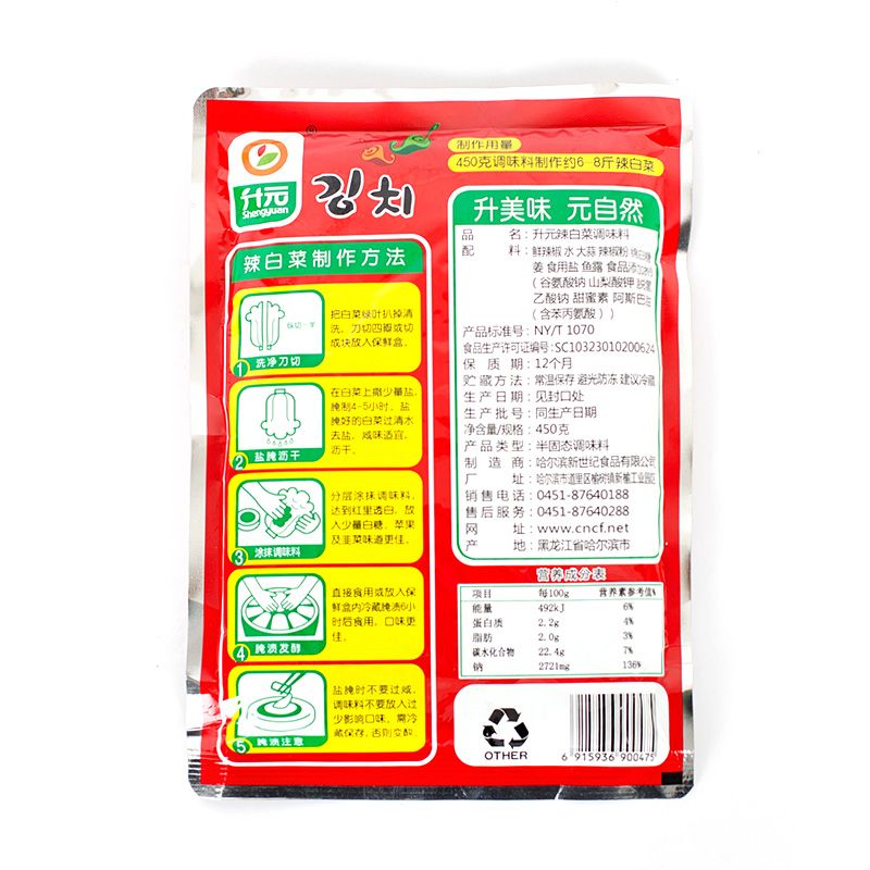 升元 韩式 辣白菜调料拌料450g朝鲜族辣酱泡菜腌料 买2赠1