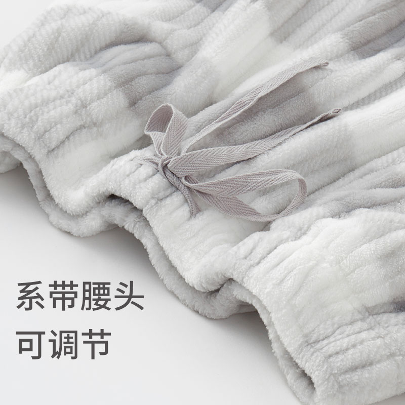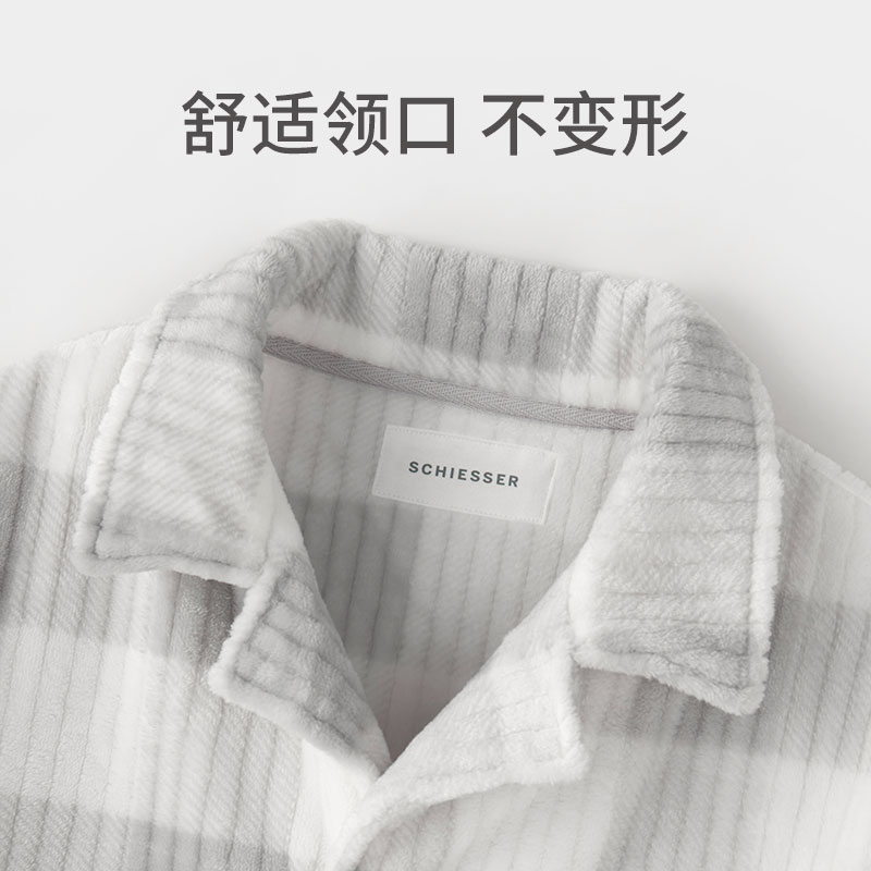 SCHIESSER舒雅奥莱男士 柔软蓬松法兰绒抽条格子睡衣家居服套装