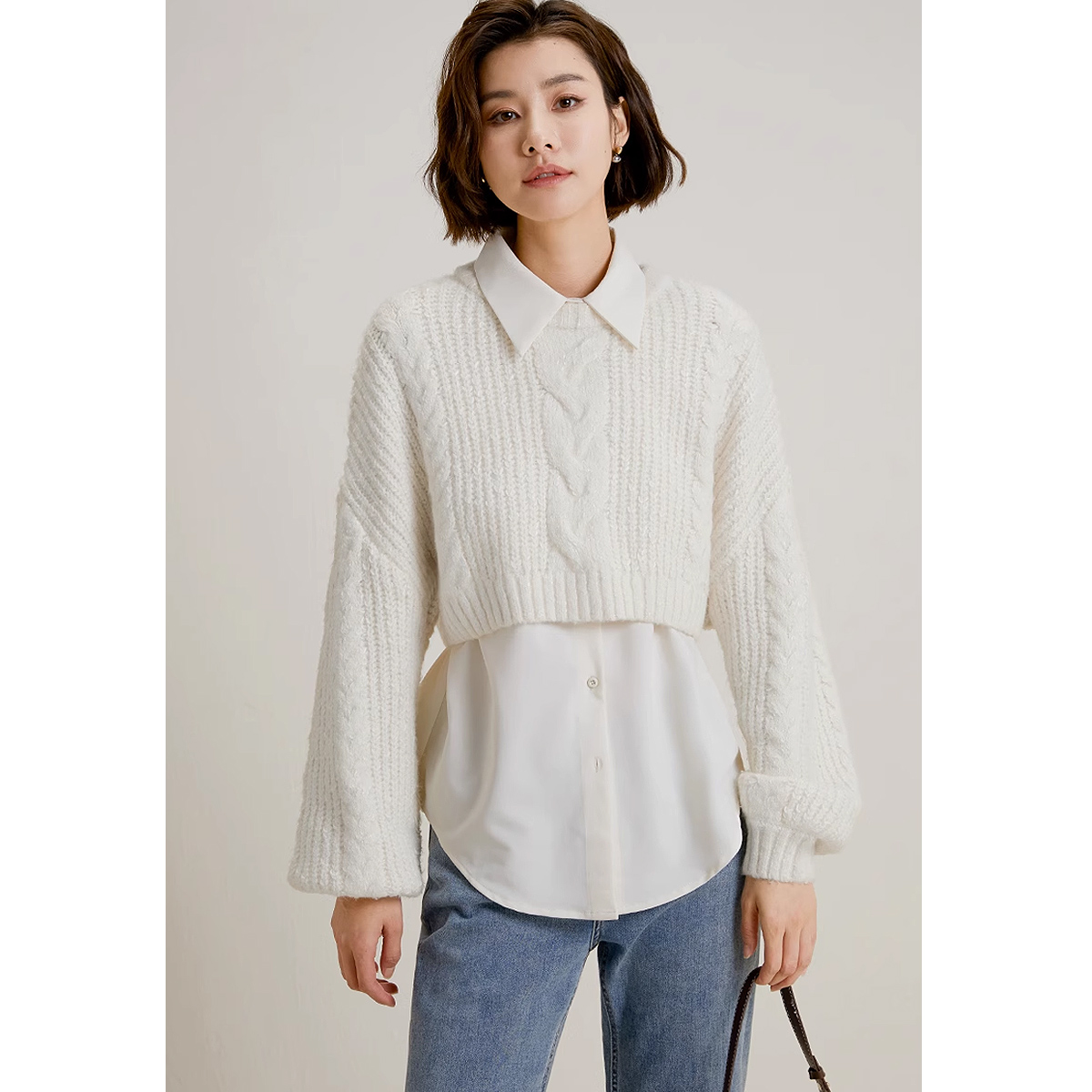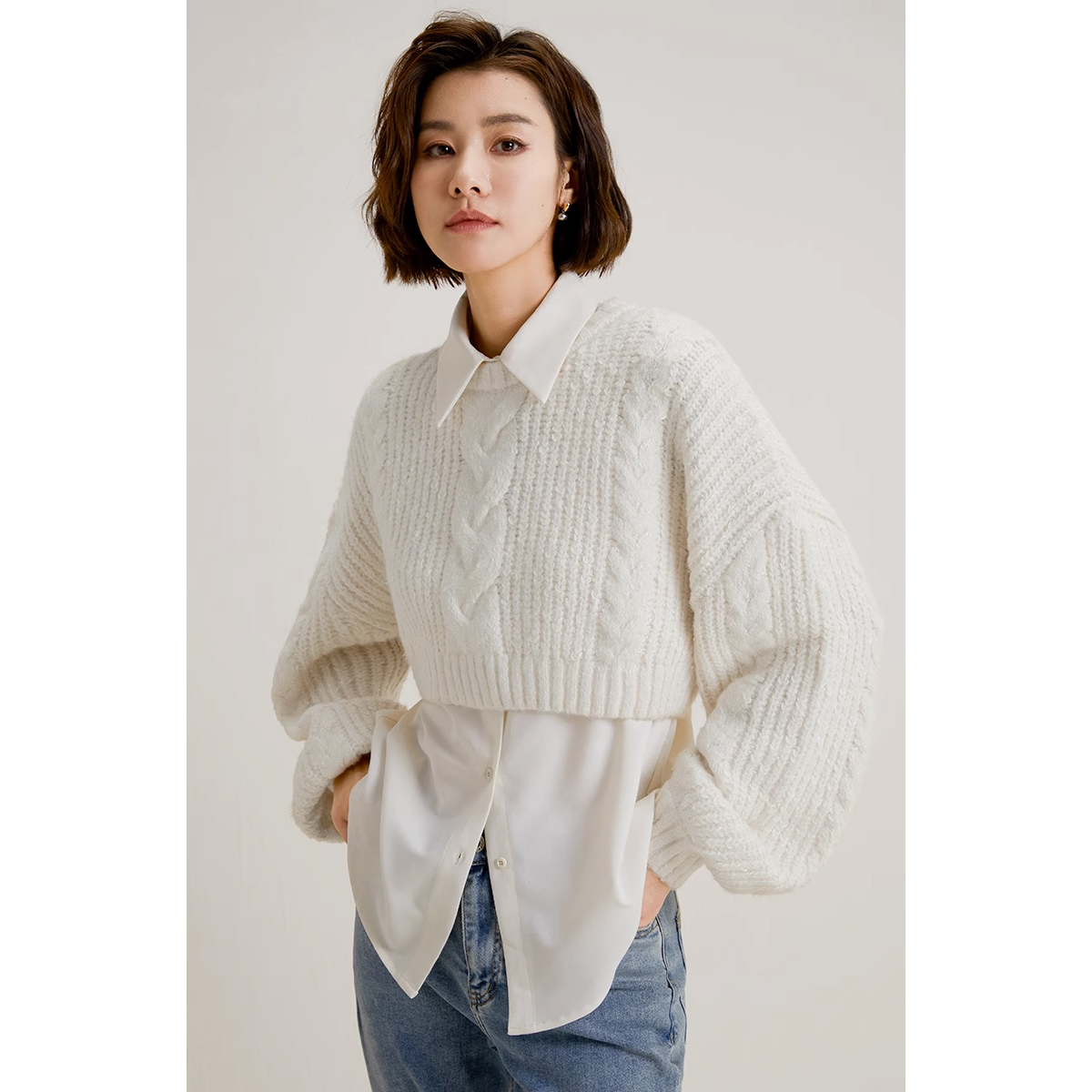 内搭毛衣别致小众打底衫 拼色羊毛长袖 修身 女2025秋冬新款 针织衫