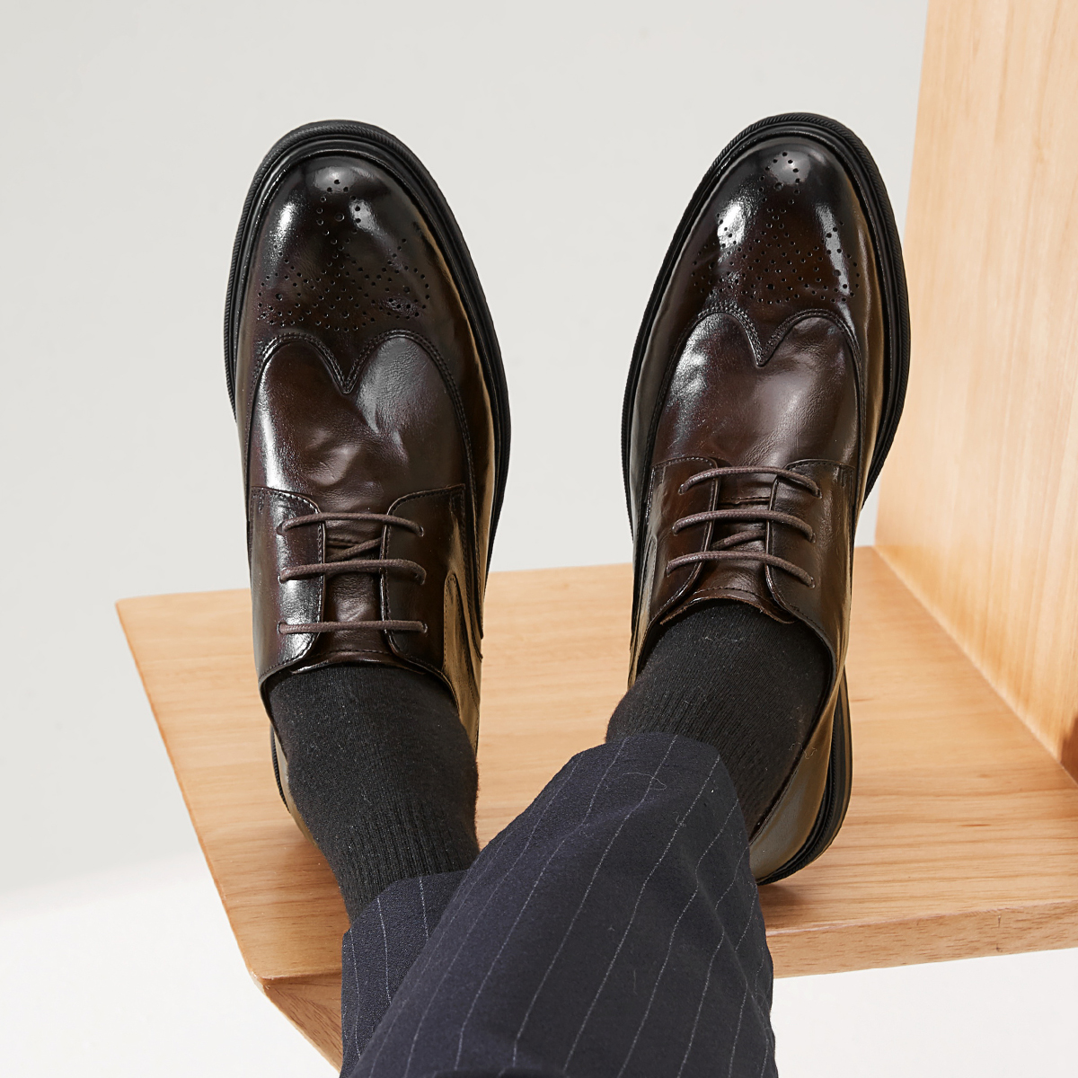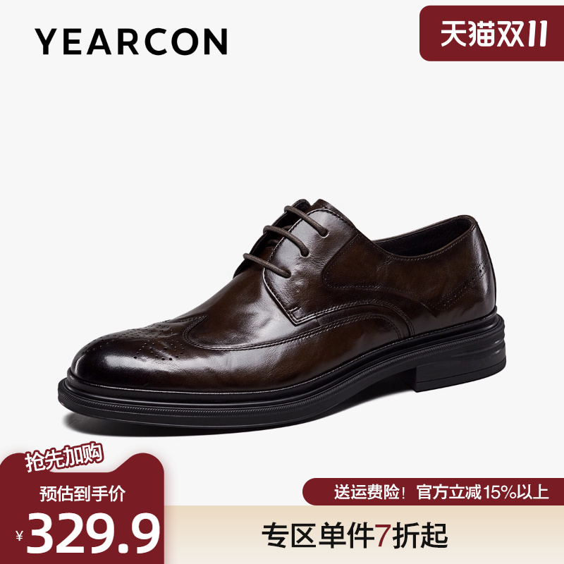 德比鞋 意尔康皮鞋 真皮布洛克雕花抓纹复古商务正装 新款 结婚 男秋季