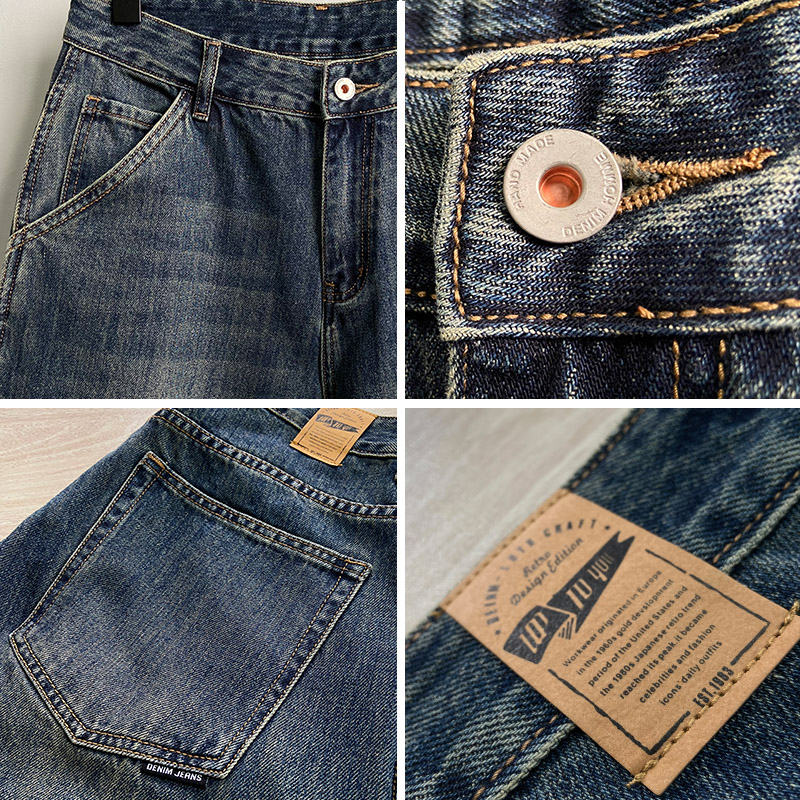 男士 2025裤 春季 宽松直筒加绒春秋小脚长裤 子男 欧美新款 潮牌牛仔裤