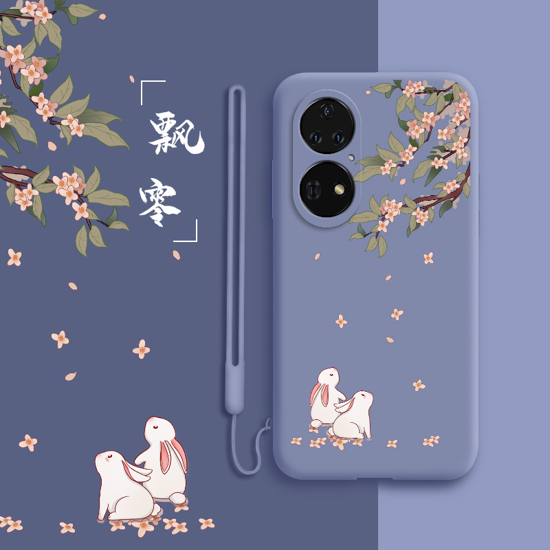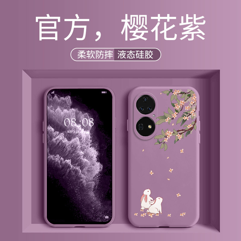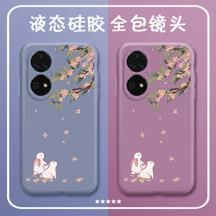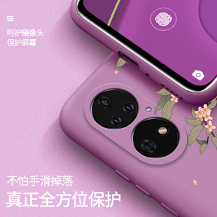 落花飘零华为p50手机壳女液态硅胶p50pro全包镜头防摔p50pro十 潮 超薄磨砂huawei浮雕软壳创意可爱保护套新款