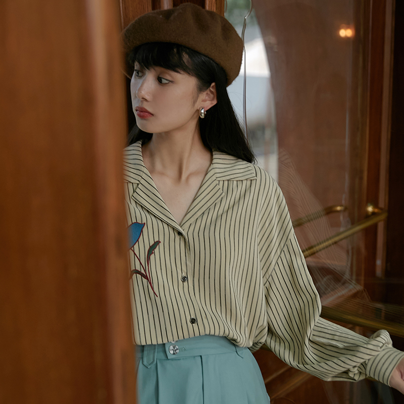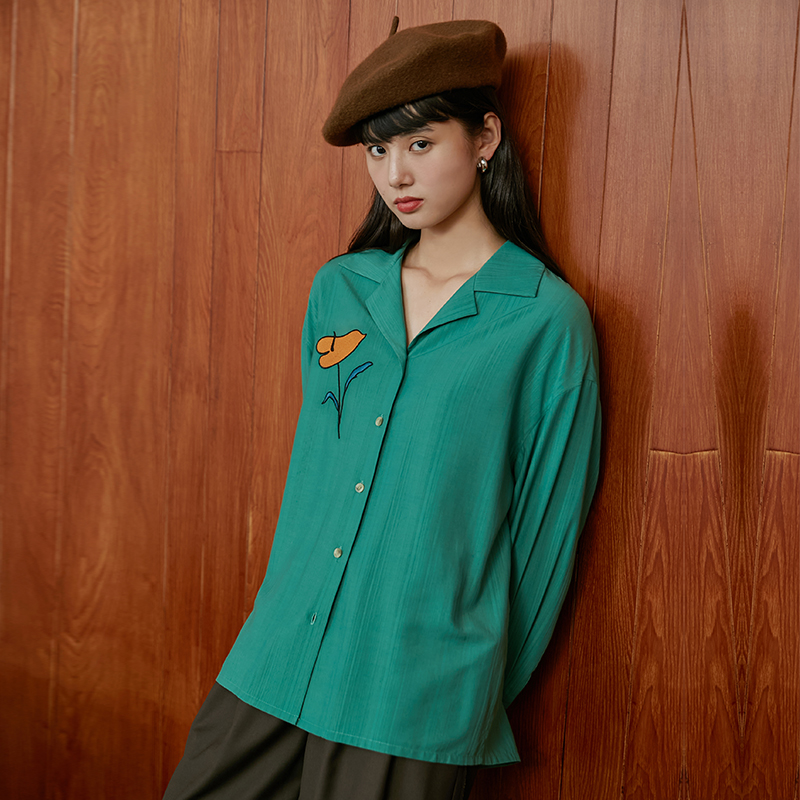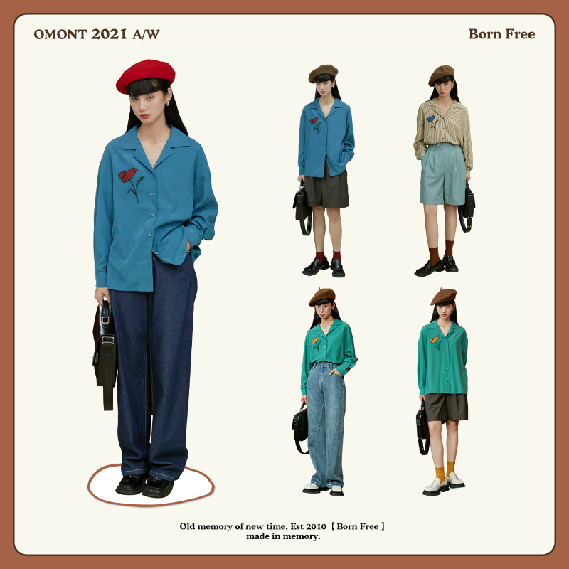 秋季 衬衫 设计感小众气质衬衣 复古港风古巴领长袖 omont蛋挞家