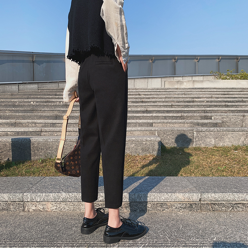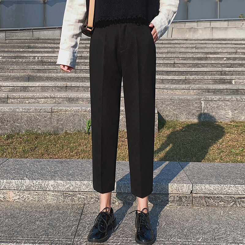 145哈伦加绒西裤 小码 八分女秋冬九分萝卜小脚裤 150小个子毛呢裤
