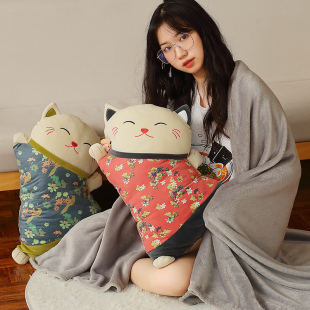 可爱招财猫抱枕公仔小猫咪靠垫沙发毛绒玩具睡觉布娃娃猫玩偶女孩