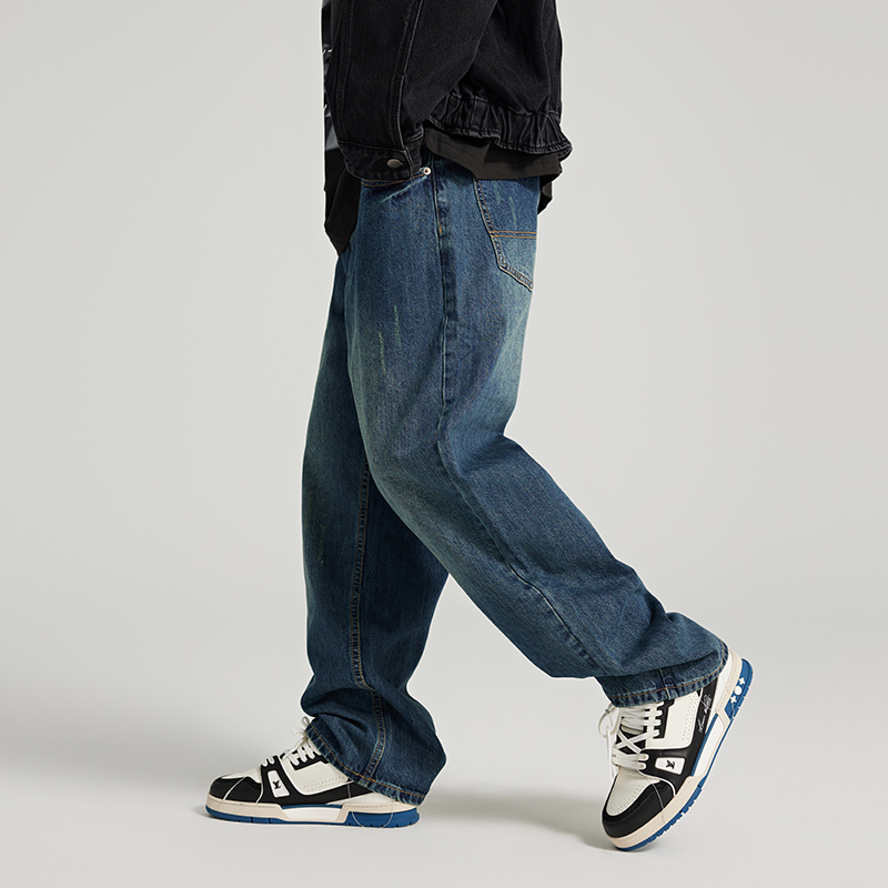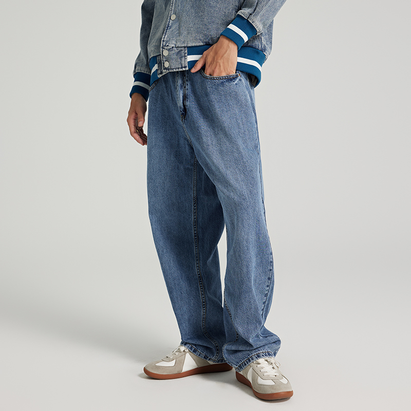 2025冬新款 王安宇同款 宽松弧形裤 男做旧复古阔感弯刀裤 森马牛仔裤