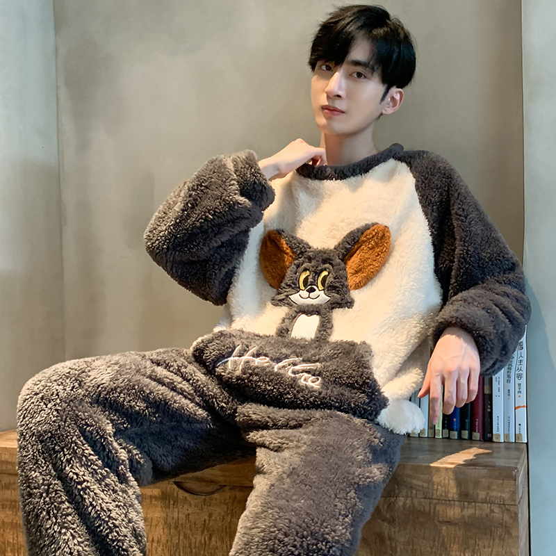 套装 加厚加绒珊瑚绒休闲大码 秋冬可外穿法兰绒家居服 冬季 睡衣男士