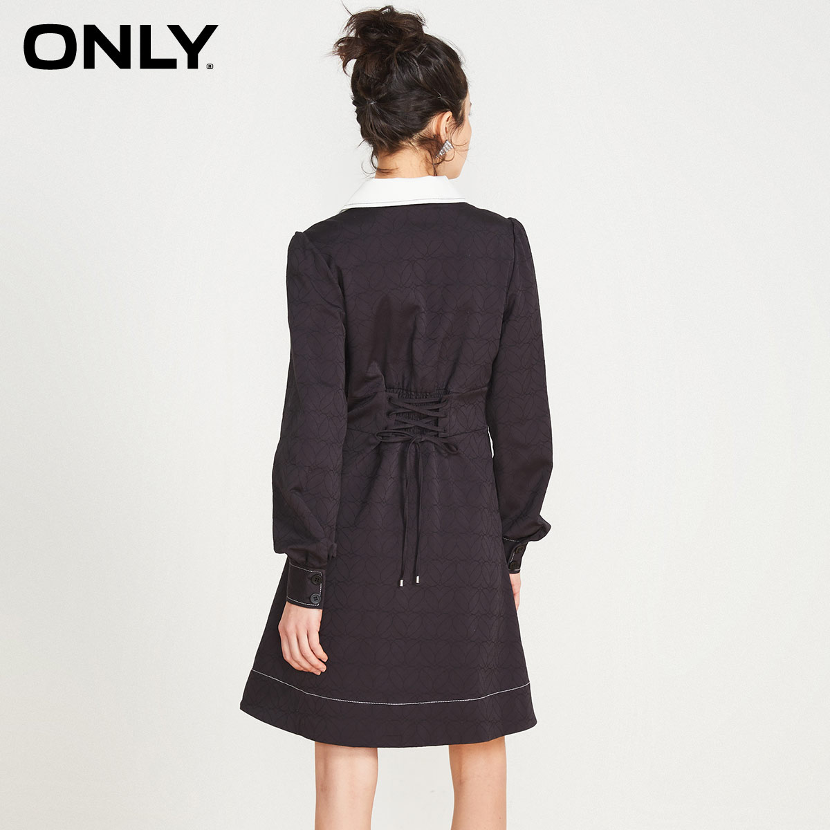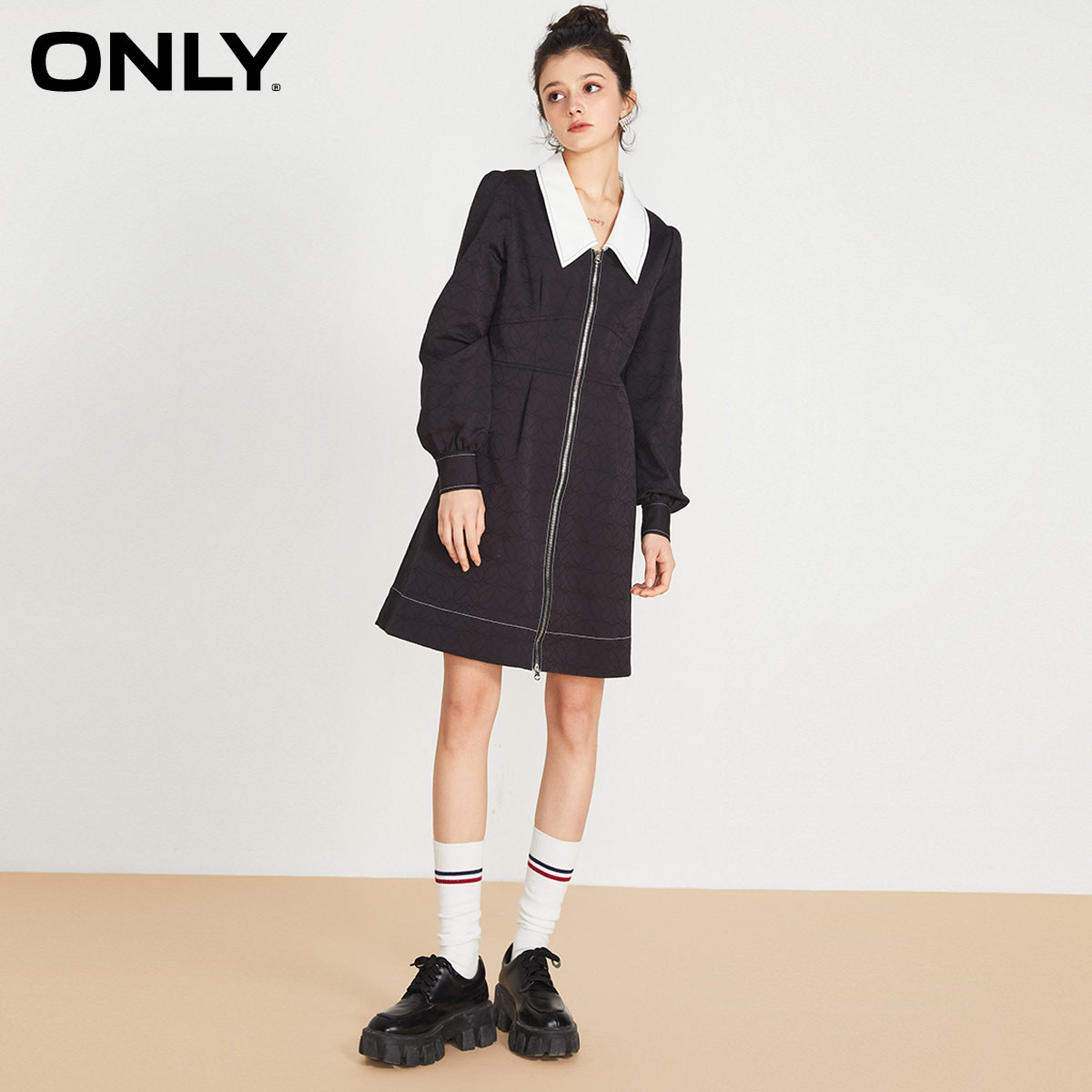 收腰A字裙中长裙白色连衣裙 气质优雅方领泡泡袖 ONLY2025夏季 新款