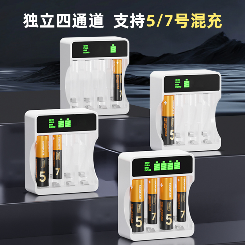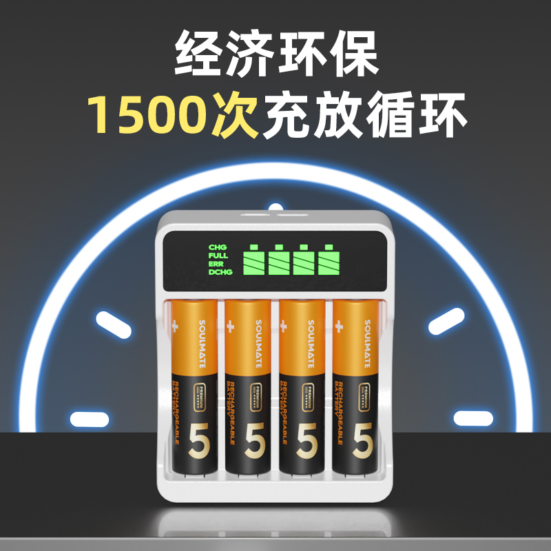 数魅SOULMATE5号7号充电电池套装 KTV无线话筒电池大容量玩具智能门锁键盘鼠标可充电镍氢锂电池USB直充耐用型