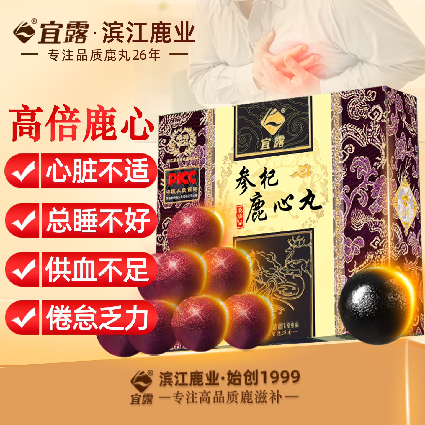 宜露参杞鹿心丸正品 梅花鹿心滋补调理长白山吉林心脏高纯度鹿心膏