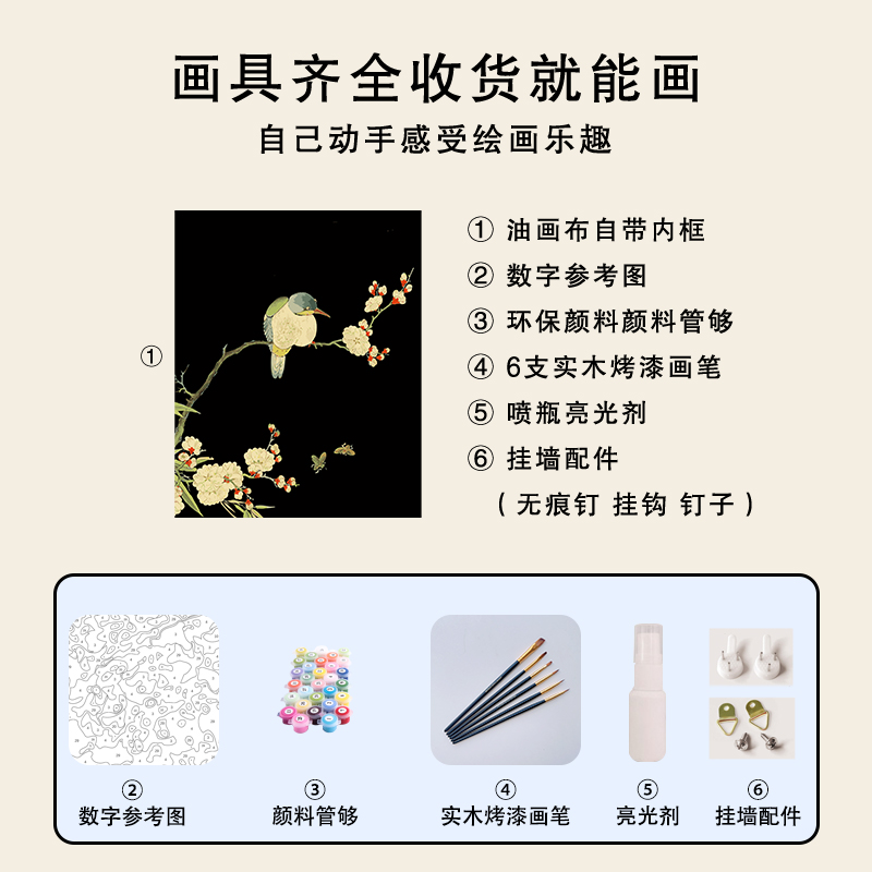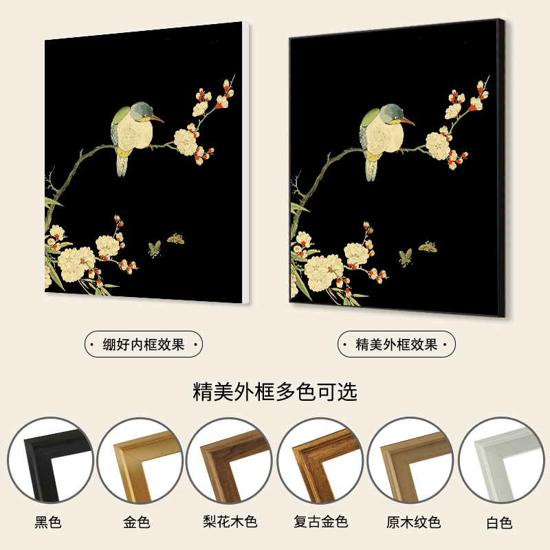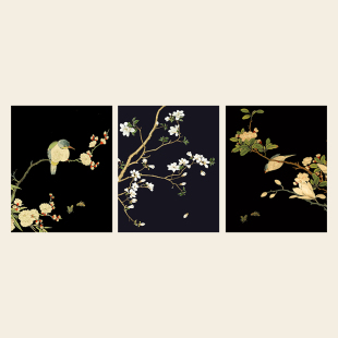新中式 饰画 数字油画diy手工手绘填色高端中古花鸟三拼三联客厅装