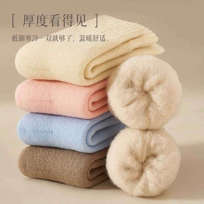 秋冬季 厚袜子女加绒加厚保暖抗寒居家毛绒绒产后中筒睡眠月子袜女