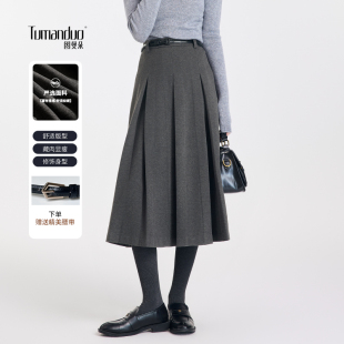 大码 秋冬半身裙小个子高腰a字裙短裙胖mm 毛呢加厚百褶裙2025新款