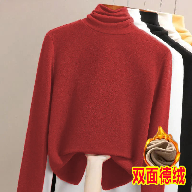 t恤女 洋气百搭上衣长袖 德绒打底衫 女士加厚加绒高领内搭秋冬新款