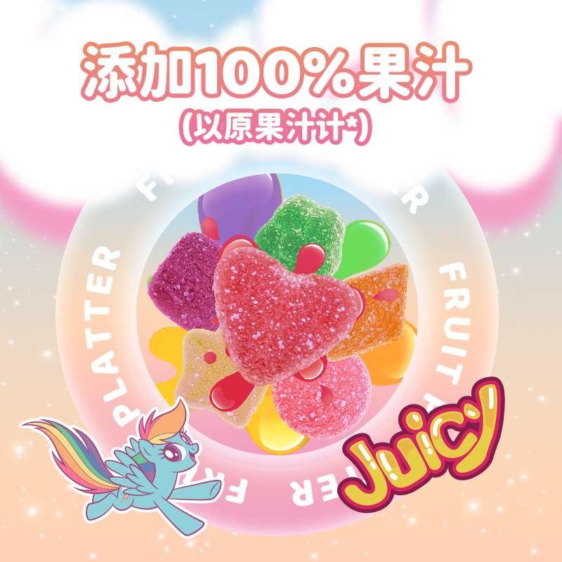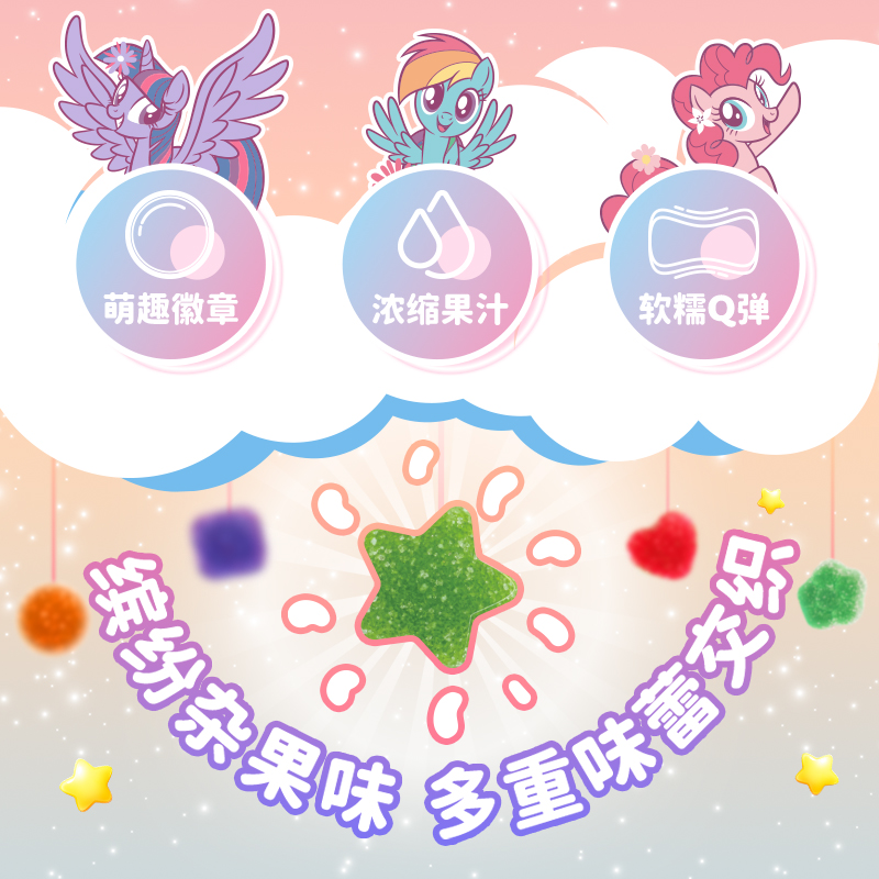小马宝莉联名吧唧100%果汁软糖52g儿童软糖零食食玩盲盒内附徽章