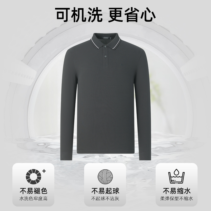 POLO衫 运动服健身长袖 男2025年秋季 男装 T恤翻领卫衣 新款 特步长袖