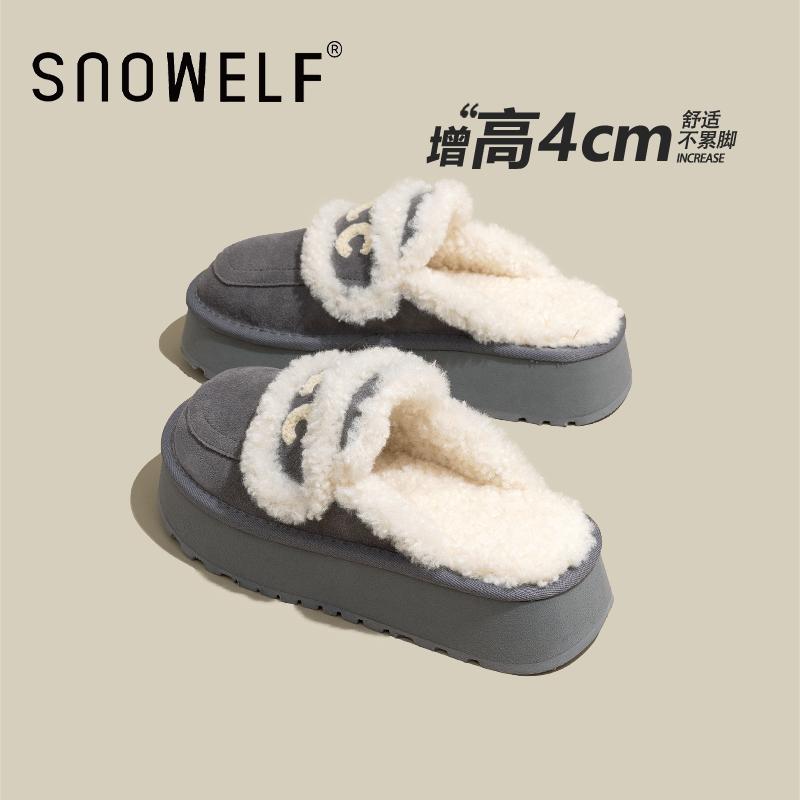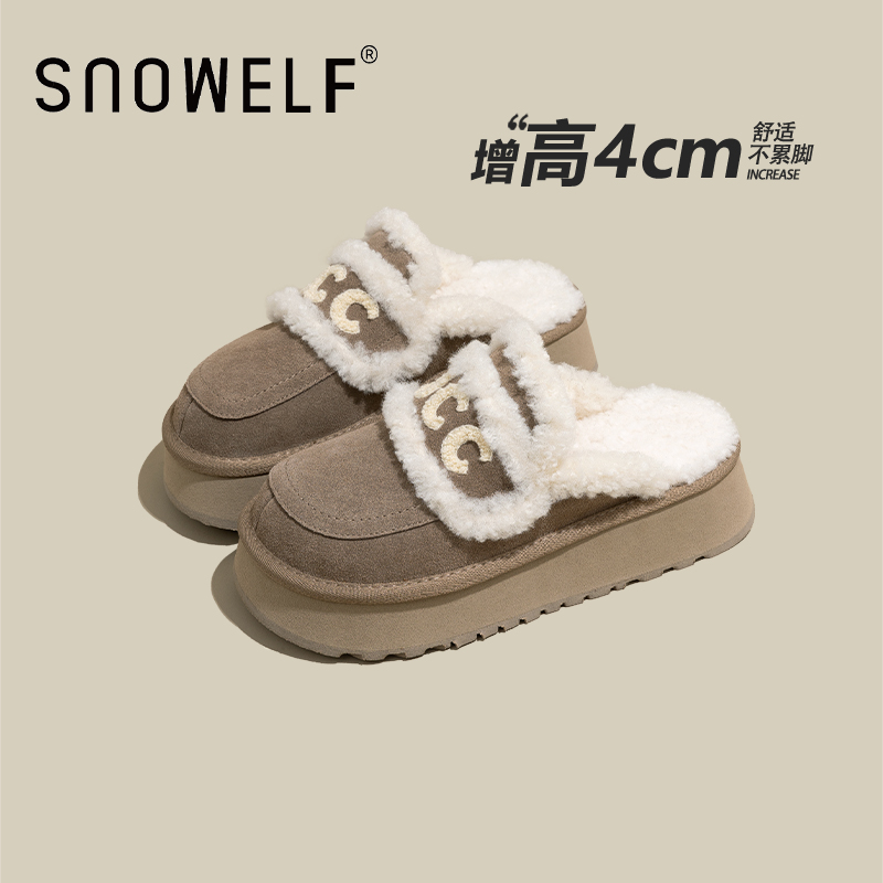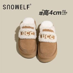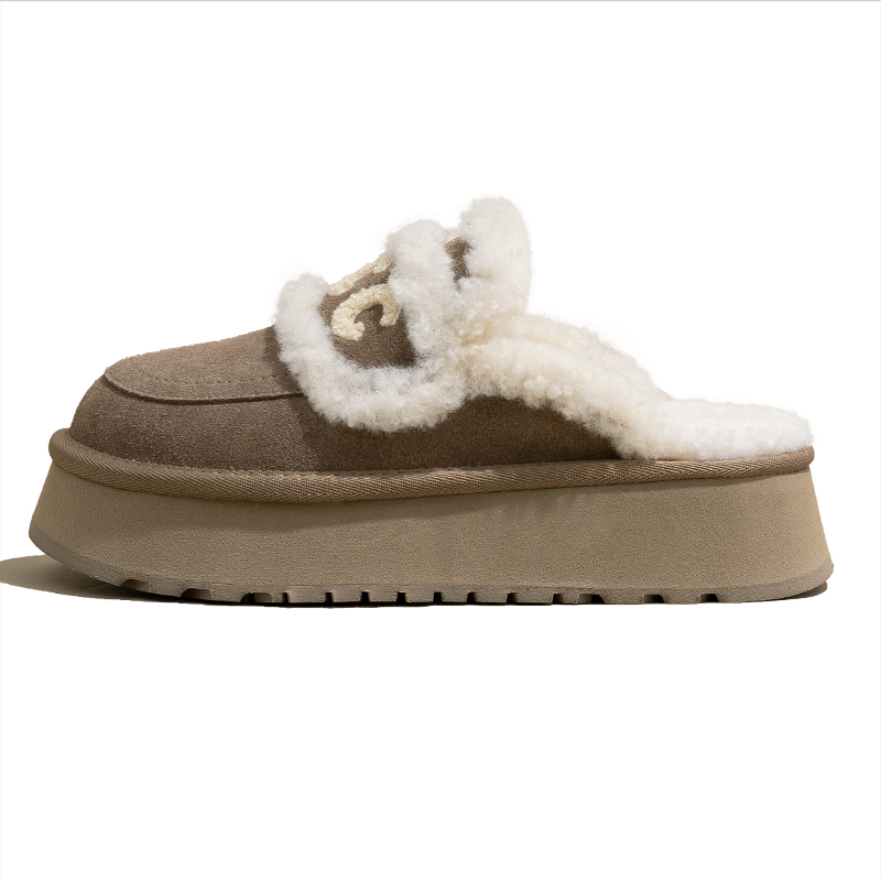 复古一脚蹬毛毛棉鞋 加绒加厚保暖面包鞋 女2025秋冬新款 厚底勃肯鞋
