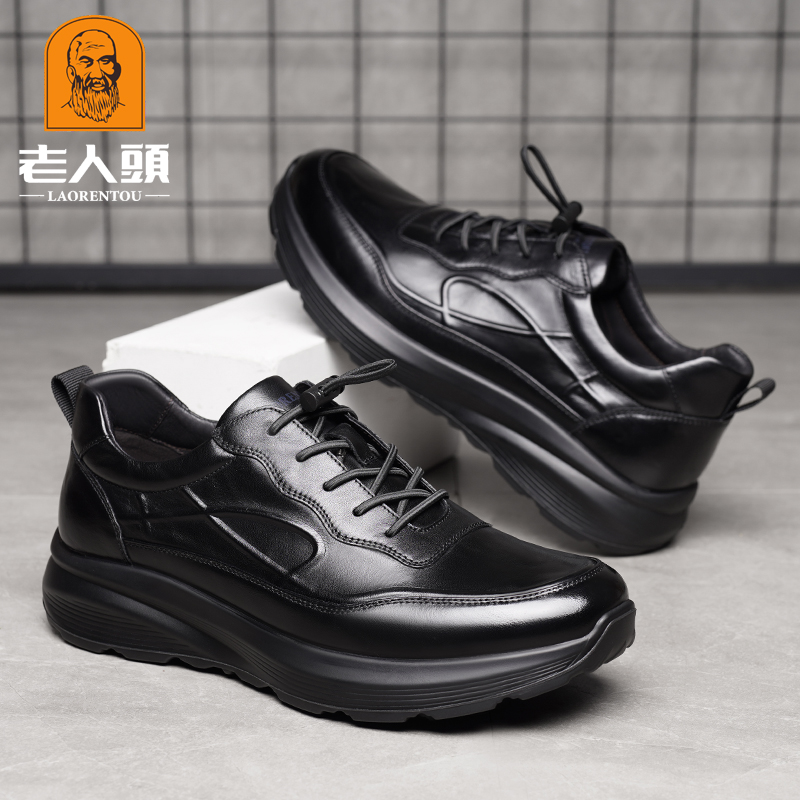 真皮透气百搭商务休闲运动鞋 老人头皮鞋 新款 秋季 男轻便厚底健步鞋