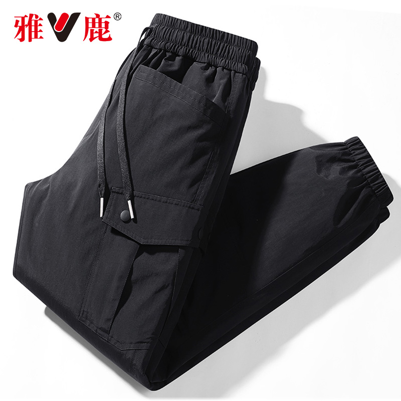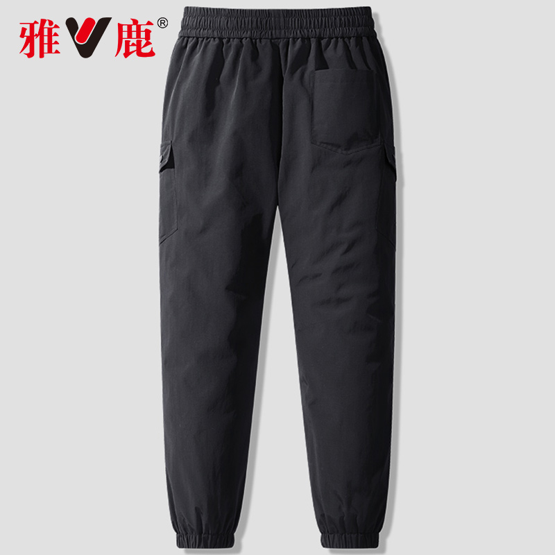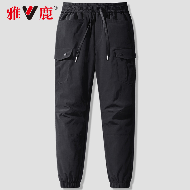 工装 2025年新款 束脚黑色休闲裤 冬季 雅鹿羽绒裤 加厚保暖防寒裤 男士