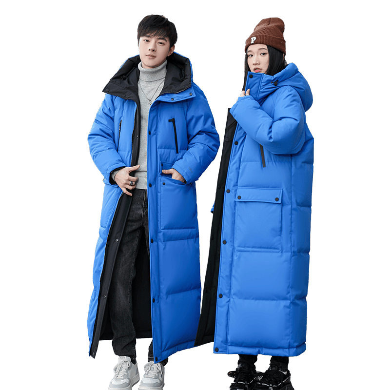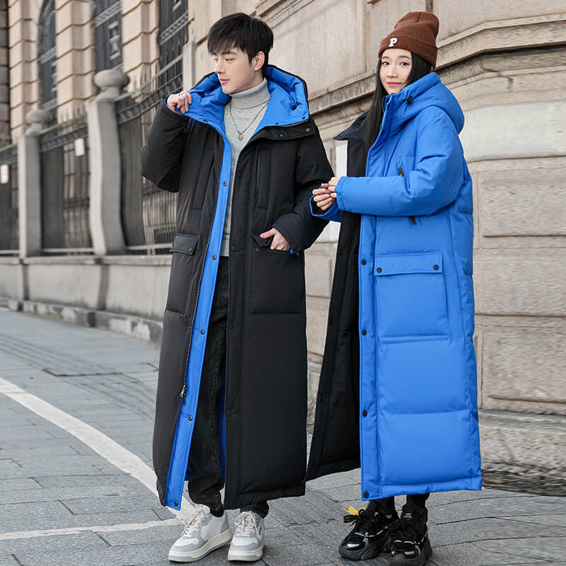 正反两穿加厚进口鹅绒防寒服男 新款 长款 过膝情侣羽绒服女2025冬季