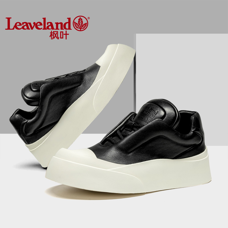 新款 子男百搭增高潮鞋 面包鞋 真皮休闲板鞋 枫叶男鞋 潮牌秋季 厚底鞋