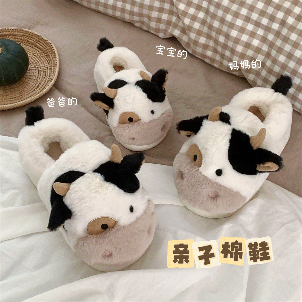 一家三口毛毛鞋 冬季 男女 2025新款 保暖防滑全包跟可爱小奶牛棉拖鞋